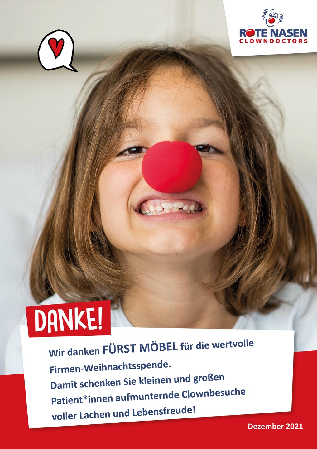Gemeinsam mit der wertvollen Unterstützung von Fürst Möbel können ROTE NASEN Clowndoctors ihr Versprechen an die kleinen Patient*innen „Wir kommen nächste Woche wieder ins Spital!“, ein bedeutendes Stück weit einhalten.