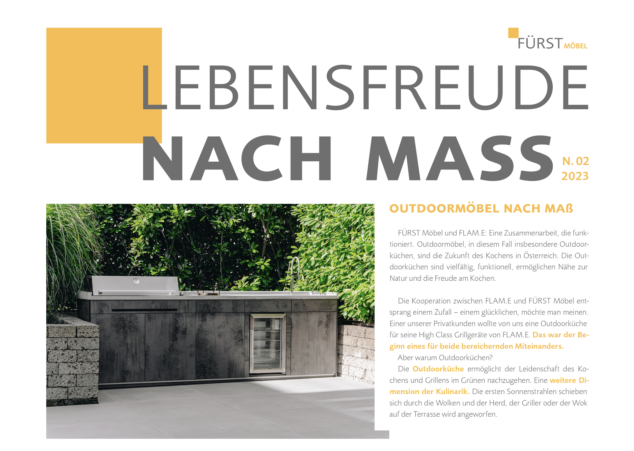 Gemeinsam mit FLAM.E erschaffen wir hochwertige Outdoorküchen - diese Ausgabe der Kundenzeitung, die Sie HIER DOWNLOADEN können, widmet sich ganz dem Themen Outdoorkulinarik und einer Zusammenarbeit, die ganz einfach perfekt funktioniert.