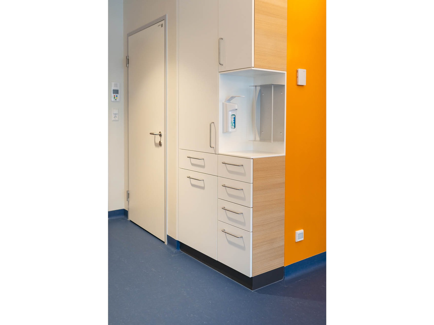 Privatsphäre im Patientenzimmer fördert die Regeneration. Die freundlichen Farbkombinationen und Details, wie die integrierte Technik und die insgesamt durchdachte, patientenfreundliche Architektur unterstützen die Gesundung der Patienten.